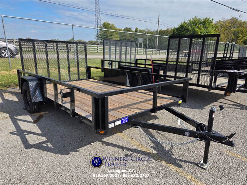82"x12' Steel Utility 1-3500# Spring Axle 2-205/75R15 Radial Tires 4"Drop Axle 5-Black Mod Wheels 2"x2" Tube Rail Full Width Rear Ramp #1 Treated Pine Floor 2" Hitch 4 Way Flat Light Connection LED Clearance Lights 4-Tie Loops Sealed Wiring Harness