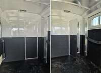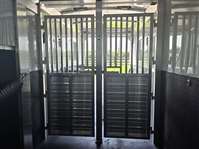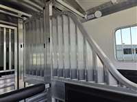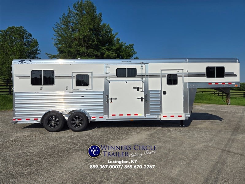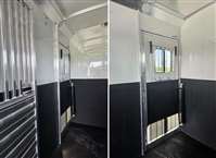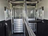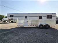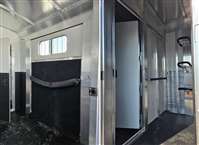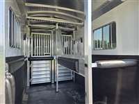 6'-10" x 23'-0" x 8'-0" Tall 2 5/16" Adjustable Coupler 10,000# Hydraulic Single Leg Jack w/ Battery Box & Battery Wired Up 2-7000# Rubber Torsion Axles 4-Wheel Electric Brakes 5-235/80R16, 10-Ply Radial Tires 5-16" Aluminum Wheels Walk-Thru Door w/ Drop Down Window w/ Window Bars w/ Fold Down Step SS Drop Down Window at Head w/ Window Bars SS & CS 24"x36" Bus Windows at Hip SS & CS 60" Tall x Full Width Easy Lift Rear Ramp w/ Dutch Doors w/ Windows Above 60' x 60" Wide Easy Lift Side Ramp w/ Dutch Door w/ Window Above CS 1 Quiet Ride Rolling Divider w/ Wither Shield & Head Shield w/ Additional Divider Setting 2 Full Height Stud Doors w/ Air Flow Bars in Top w/ Removable Center Post to Swing Both Directions Walk-thru Door in Bulkhead Wall Rubber Floor Mats 3-Two-Way Roof Vents 7-Inside Ties 3-Outside Ties 48" Front Dressing Room DR Door w/ Window w/ Fold Down Step CS 3 Fold Saddle Racks 1-Blanket Bar 10-Bridle Hooks 1-Brush Tray 5' Clothes Rod in Nose 4-LED Dome Lights 4-LED 11" Awning Lights 5-Running Lights SS & CS Pair of Extra Height Turn Signals Custom Graphics 4-Star 8 Year Warranty