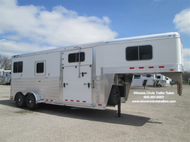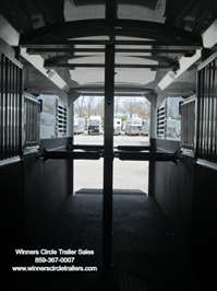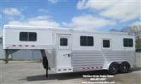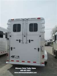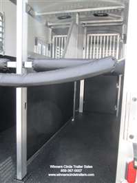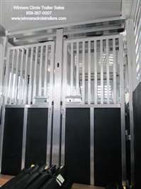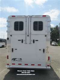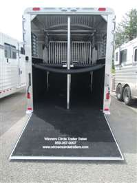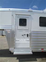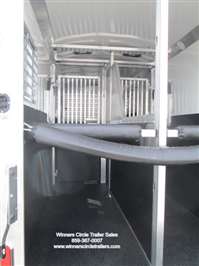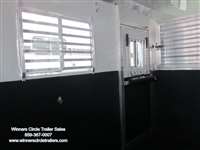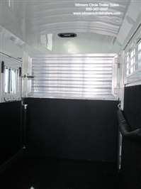 6'-10" x 20'-0" x 8'-0" Tall 2 5/16" Adjsutable Coupler 10,000# Hydraulic Single Leg Jack w/ Battery Box & Battery Wired Up 2-4900# Rubber Torsion Axles 4-Wheel Electric Brakes 5-235/80R16, 10-Ply Radial Tires 5-16" Aluninum Wheels Walk-Thru Door w/ Drop Down Window w/ Window Bars w/ Fold Down Step SS Drop Down Window at Head w/ Window Bars SS & CS 2 - 24"x36" Bus Windows at Hip & Front Box Stall SS 24" x 36" Bus Window at Hip CS 60" Tall x Full Width Rear Easy Lift Ramp w/ Dutch Doors w/ Windows Above 60' x 60" Wide Easy Lift Side Ramp w/ Dutch Door w/ Window Above CS Insulated and Lined Roof Full Length of Trailer 1 Quiet Ride Rolling Divider w/ Wither Shield & Head Shield, Divider Full at Bottom w/ Rubber Both Sides Additional Divider Setting 2 Full Height Stud Doors w/ Air Flow Bars in Top w/ Removable Center Post to Swing Both Directions WERM Flooring Quiet Ride Butt & Breast Bars Full Width Swing-Out Drop Partition 3-Two-Way Roof Vents 8-Inside Ties 3-Outside Ties 5-LED Dome Lights 4-LED 11" Awning Lights 5-Running Lights SS & CS Pair of Extra Height Turn Signals