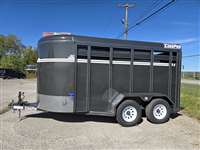 6'-8"x14'-0"x7'-0" Tall 2-3500# Dexter Rubber Torsion Axle 5-225-75R15 Radial 10Ply Tires Full Swing Rear Door 4-Tier Saddle Rack 6-Bridle Hooks 2 5/16" Hitch #1 Treated Pine Floor Swinging Tack Room Wall 4-Wheel Electric Brakes 1 Collapsible Slant Horse Divider w/ HD Latch