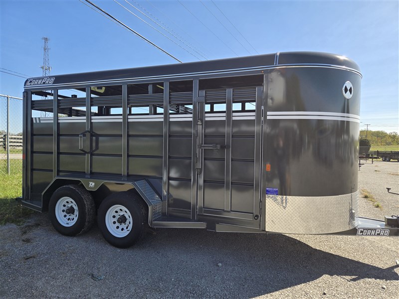 6'-8" x 16'-0" x 7' Tall 2-5000# Dexter Rubber Torsion Axles 4-Wheel Electric Brakes 4-225-75-R15 10Ply Radial Tires Full Swing Center Gate 1-LED Interior Light Side Escape Door 2 5/16" Hitch Full Swing 1/2 Slide Rear Door Rubber Bumper #1 Treated Pine Floor LED Clearance Lights LED Tail Lights Brake Away Kit