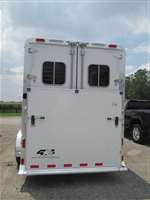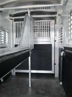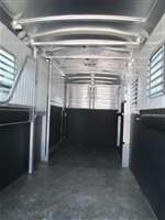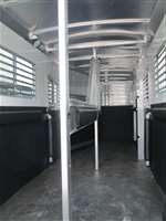 6'-10" x 19'-0" x 8'-0" Tall 2 5/16" Adjsutable Coupler Single Leg Spring Loaded Jack 2-4900# Rubber Torsion Axles 4-Wheel Electric Brakes 5-235/80R16, 10-Ply Radial Tires 5-16" Aluninum Wheels Walk-Thru Door w/ Drop Down Window w/ Heavy Duty Window Bars w/ Fold Down Step SS Drop Down Window at Head w/ Heavy Duty Window Bars SS & CS 24"x36" Bus Windows w/ Heavy Duty Window Bars at Hip SS& CS 50/50 Rear Doors w/ Windows w/ Full Width x 60" Tall Easy Lift Ramp Behind Doors 60' x 60" Wide Easy Lift Side Ramp w/ Dutch Door w/ Window Above CS 1 Quiet Ride Rolling Divider w/ Wither Shield & Head Shield Additional Divider Setting Full Width Center Gate w/ Spread Air Flow Bars w/ Large Double Swing Slam Latch Rubber Floor Mats Quiet Ride Butt & Breast Bars Split Drop Partition Slatted Solid w/ Removable Center Post 4-Two-Way Roof Vents 8-Inside Ties 3-Outside Ties 4-LED Dome Lights 1-LED 18" Awning Light 2-LED 11" Awning Lights 5-Running Lights SS & CS Pair of Extra Height Turn Signals Custom Graphics